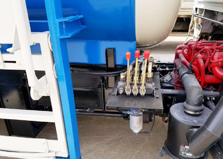 5、車上裝有不銹鋼清水箱和一個(gè)高壓水泵,便于清洗車輛和作業(yè)現(xiàn)場(chǎng),清潔衛(wèi)生。