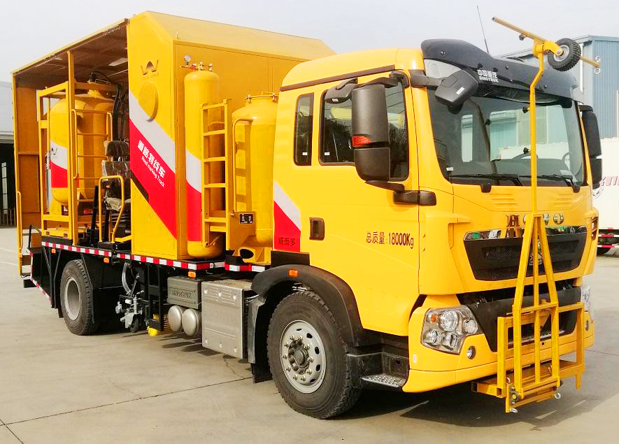 該車主要用于道路劃線施工,如道路交通標(biāo)線的施劃和敷舊。整車由底盤、料罐系統(tǒng)、玻璃珠罐系統(tǒng)、送料系統(tǒng)、劃線裝置系統(tǒng)、導(dǎo)向清掃系統(tǒng)等裝置組合而成,可在封閉或不封閉道路上實(shí)現(xiàn)道路交通線型的施工.。